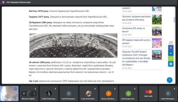 Під час лекції було розглянуто принципи роботи атомної енергетики, будова реактора РБМК та процеси які відбуваються у ньому, причини які призвели до катастрофи та її наслідки, зроблено детальний аналіз впливу Чорнобильскої катастрофи на атомну енергетику у світі. Здобувачі освіти і гості отримали інформацію про зародження руху проти використання атомної енергетики та інші надзвичайні ситуації у атомний енергетиці які відбувалися на інших атомних електростанціях.