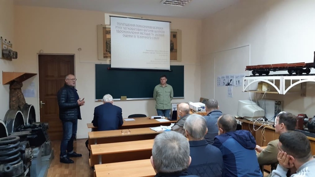 Прокопенко Павло, аспірант четвертого року навчання за освітньо-науковою програмою (ОНП) «Залізничний транспорт» освітнього ступеня доктор філософії, зробив доповідь про виконання ОНП та стан готовності дисертації до захисту тема якої «Поліпшення показників безпеки руху легковагових вагонів шляхом удосконалення методів та засобів оцінки їх технічного стану». Науковий керівник д.т.н., проф. Фомін дав оцінку здобувачу, зробив деякі уточнення по суті дисертації. В обговоренні прийняли участь завідувач кафедри ЕРСЗ д.т.н., проф. Ткаченко В.П., завідувач кафедри ВВГ к.т.н, доц. Іщенко В.М., д.т.н., проф. професор кафедри ВВГ Кельріх М.Б., д.т.н., проф. професор кафедри ВВГ Сапронова С.Ю., директор Київського Інституту залізничного транспорту к.т.н., доц. Твердомед В.М. і надали зауваження по суті роботи, темі дисертації. Не зважаючи на зауваження, спільнота схвалила рішення наукового семінару про прийняття дисертації Прокопенка Павла до процедури захисту.