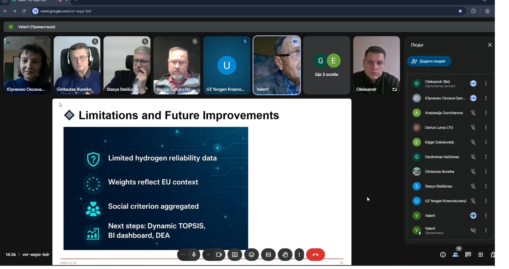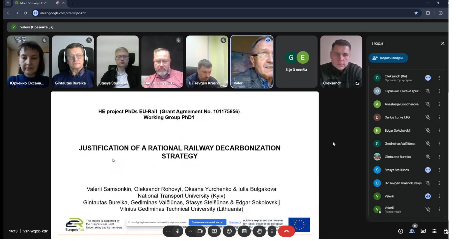19 грудня 2025 року відбувся міжнародний вебінар «Discussion of results of the PhD 1 working group with industry», організований у межах проєктів Horizon Europe / EU-Rail (PhDs EU-Rail). Захід пройшов у форматі онлайн-зустрічі з участю представників Києва та Вільнюса, що підкреслило міжнародний характер співпраці та спільний інтерес до розвитку європейського залізничного транспорту. Координаторами заходу виступили – Вільнюський технічний університет імені Гедімінаcа (VILNIUS TECH): – проф. Гінтаутас Бурейка – доц. Гедимінас Вайчюнас – доц. Стасіс Стейшунас – проф. Едгар Соколовський – Національний транспортний університет (НТУ), м. Київ: – проф. Валерій Самсонкін – доц. Оксана Юрченко – проф. Інесса Рутковська – аспірант Олександр Роговий У вебінарі також взяли участь представники індустрії: