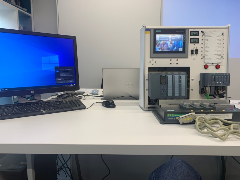 практичні вправи з використанням ПЛК SEMATIC S7 1500, розподіленною станції ET-200 та сенсорної HMI-панелі та моделлю конвеєра.